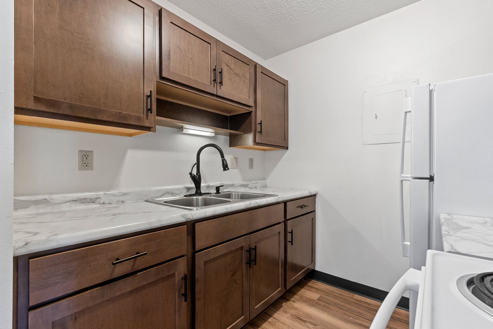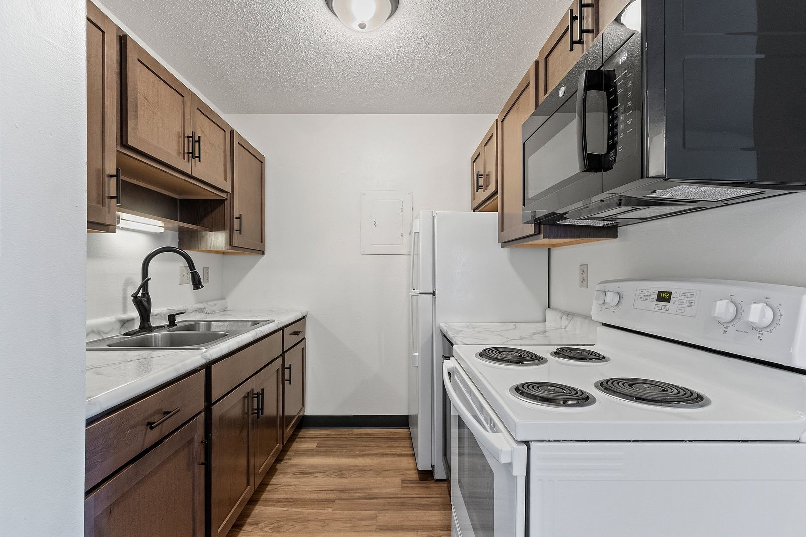 We offer spacious 1 Bedroom 1 Bathroom and 2 Bedroom 1 Bathroom Apartments. Our remolded apartments include new vinyl plank flooring, cabinets, countertops, vanity, and upgraded light fixture package. We look forward to helping you find your new home. Call today for details!