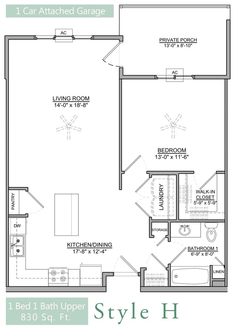1 Bed 1 Bath Upper