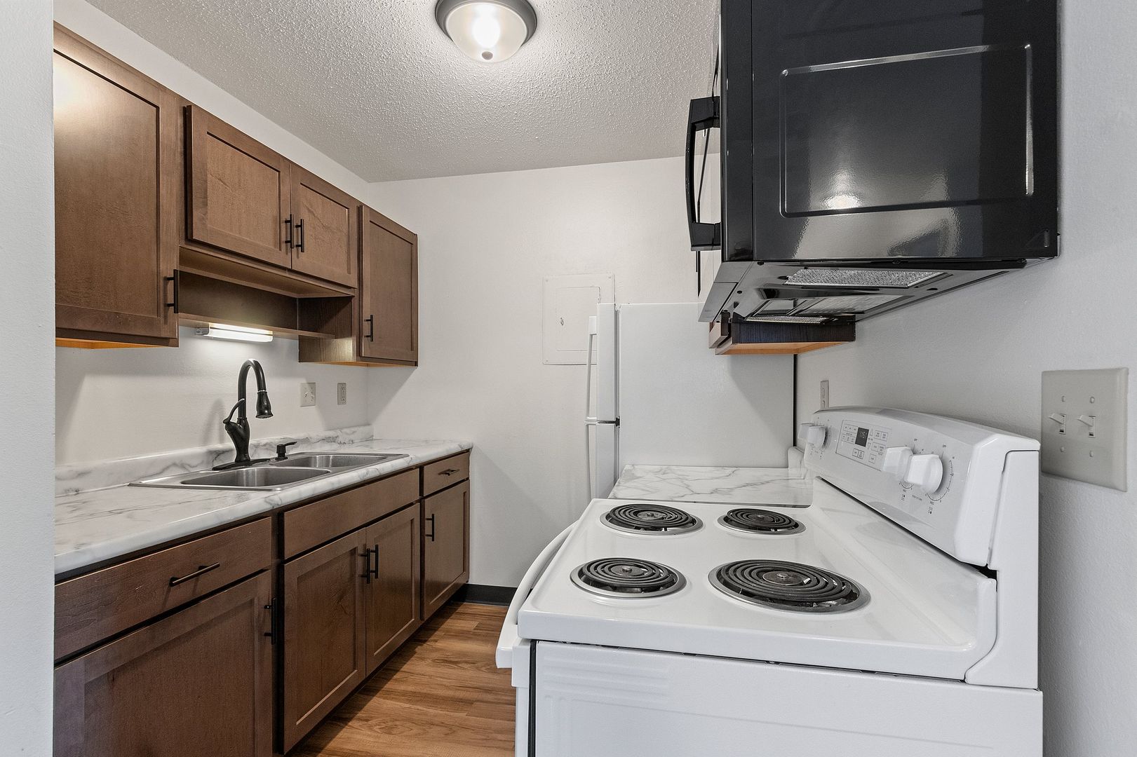 We offer spacious 1 Bedroom 1 Bathroom and 2 Bedroom 1 Bathroom Apartments. Our remolded apartments include new vinyl plank flooring, cabinets, countertops, vanity, and upgraded light fixture package. We look forward to helping you find your new home. Call today for details!