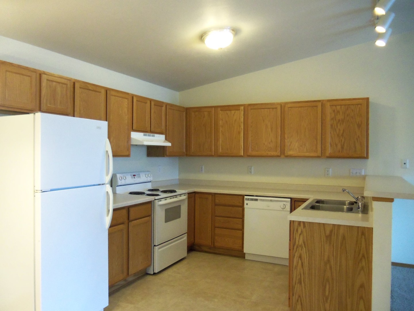 Our luxury apartments include a detached one stall garage with remote, air conditioning, window treatments, deluxe appliances including dishwasher and full-size washer/dryer. Cats allowed (some restrictions apply). Apartment has a private balcony and vaulted ceilings. Pond and field views are available.